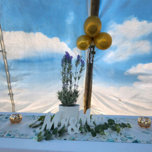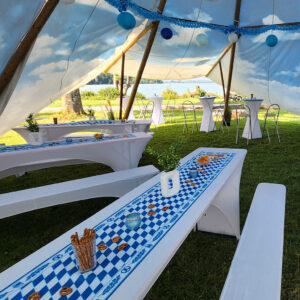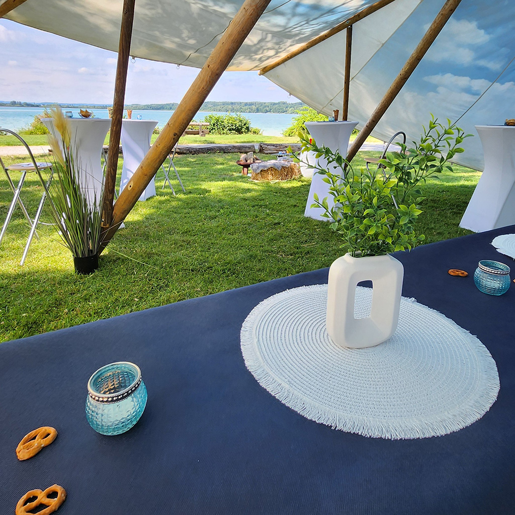 Uns gefällt die bayrische Tischdeko schon „narrisch guad"! Harmonie mit TIPI und weiß-blauen Himmel pur.